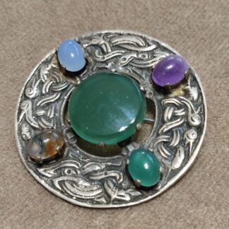 Серебряная брошь с натуральными камнями